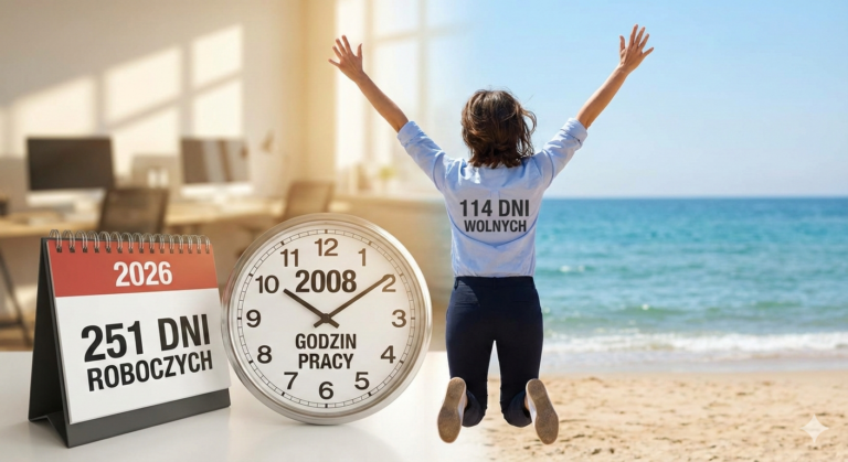 Poniżej przedstawiamy aktualne, kompletne i w pełni zgodne z Kodeksem pracy zestawienie czasu pracy na 2026 rok dla pracowników zatrudnionych w pełnym wymiarze czasu pracy. Znajdziesz tu nie tylko liczby godzin i dni roboczych, ale także wyjaśnienie podstaw prawnych oraz sposób obliczania wymiaru czasu pracy, uwzględniający wpływ świąt przypadających w różne dni tygodnia.